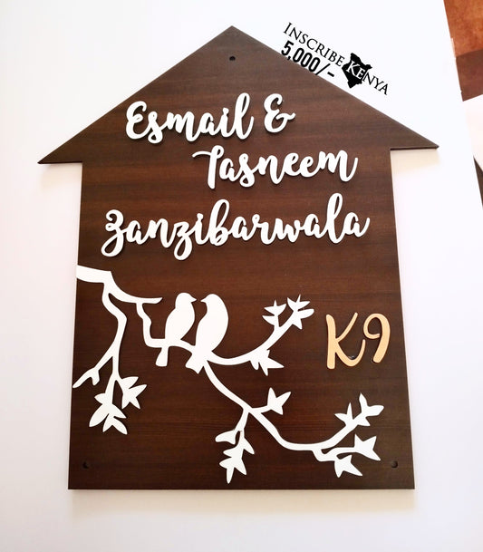 House shaped Wooden Couple Nameplate