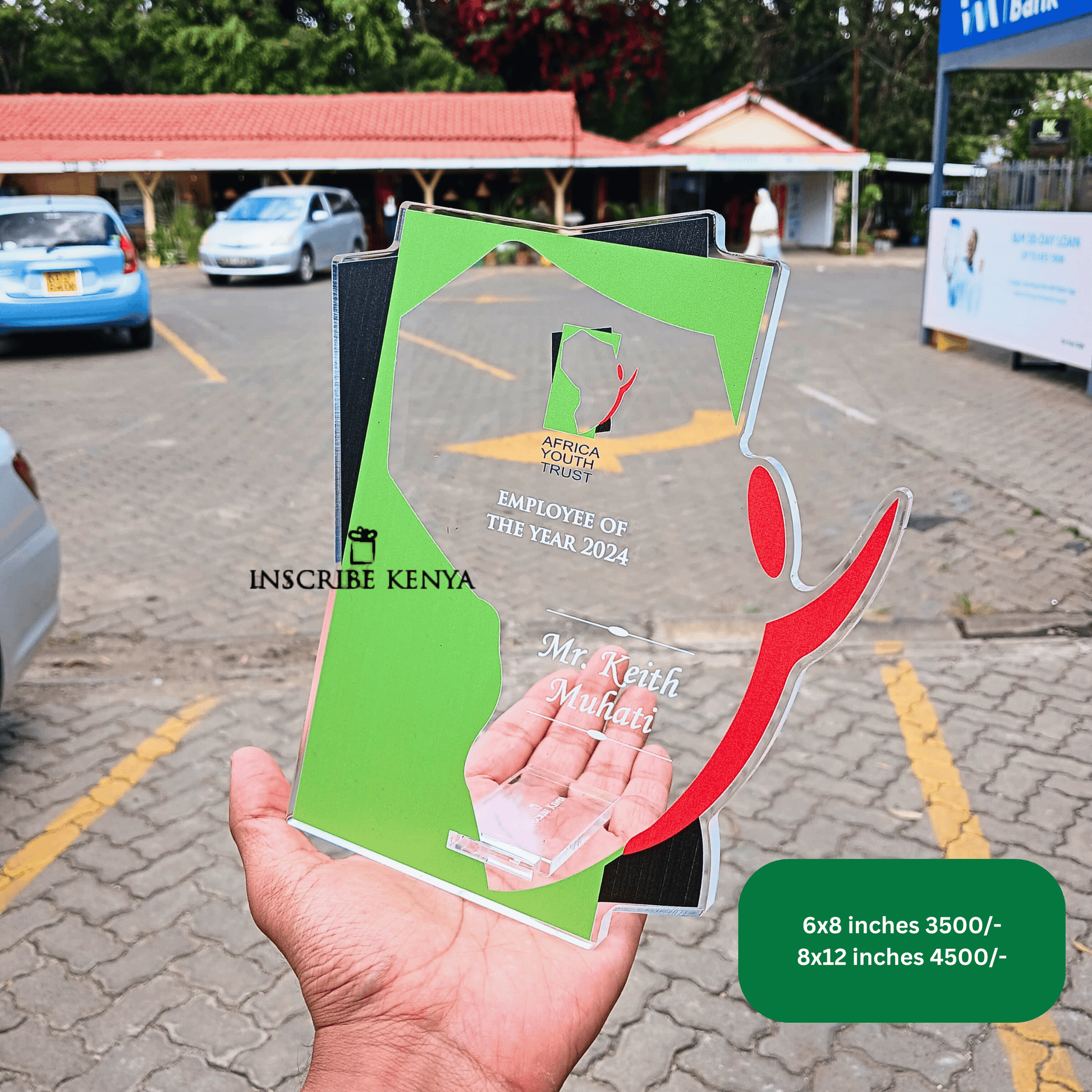 The Africa Youth Trust Acrylic Plaque, crafted by Inscribed Gifts Kenya in Nairobi,Kenya, is a distinguished award designed to honor exceptional achievements. This plaque is meticulously crafted from high-quality acrylic, ensuring both durability and a sleek, modern appearance. Its design reflects the values and mission of the Africa Youth Trust, making it a meaningful token of recognition.