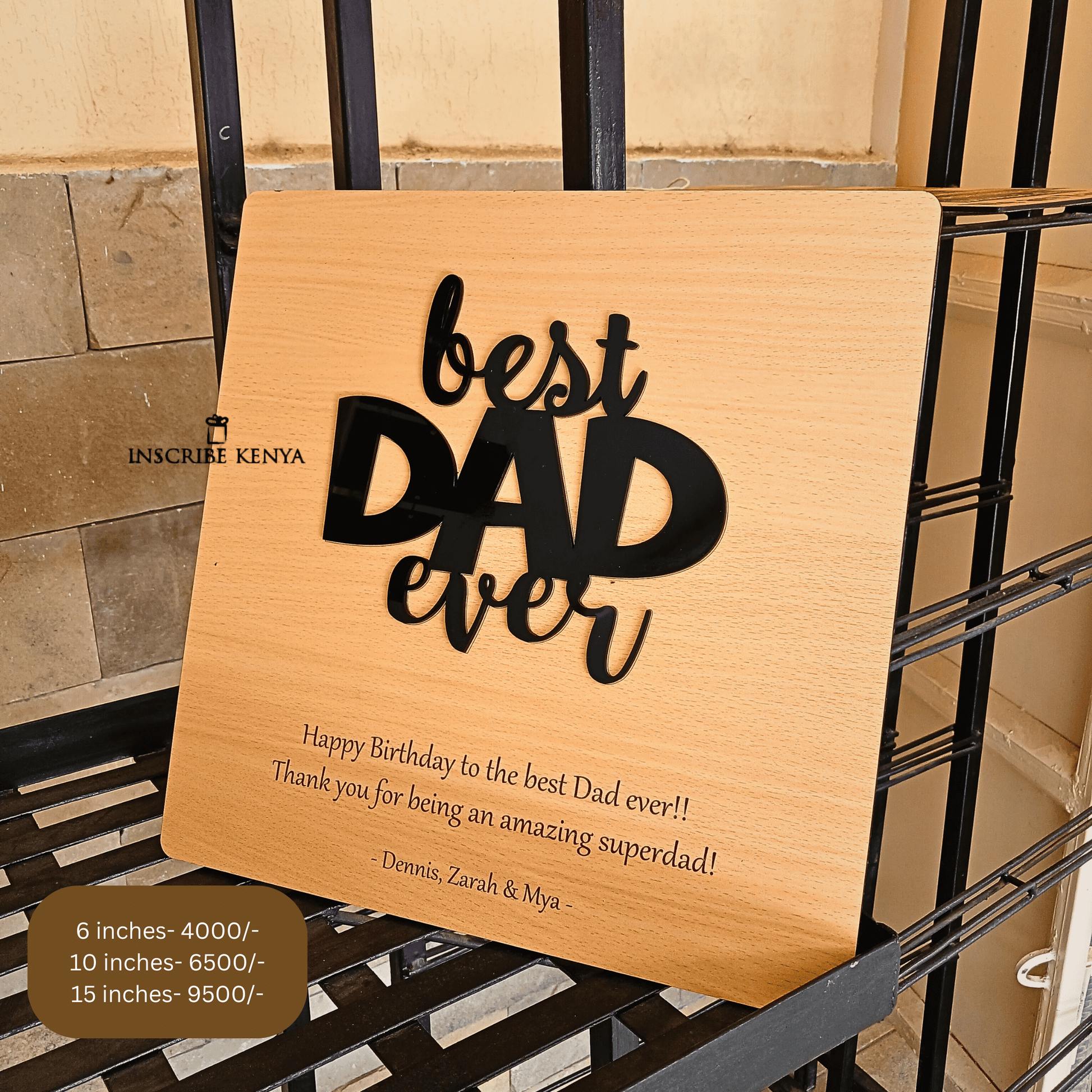 Celebrate the special bond with your dad through the timeless elegance of our Best Dad Ever Wooden Frame, handcrafted by Inscribe Kenya. This rustic yet modern frame features high-quality, sustainably sourced wood, making it both eco-friendly and durable.